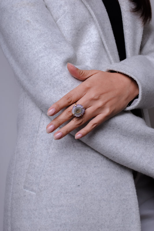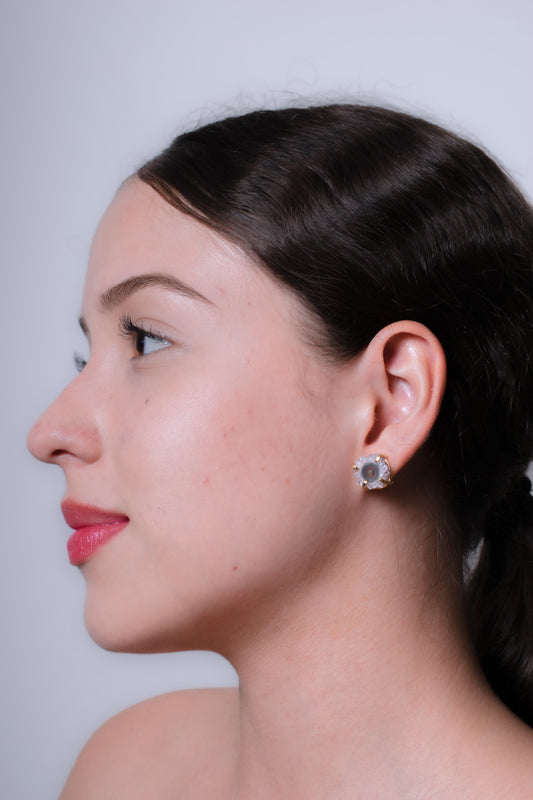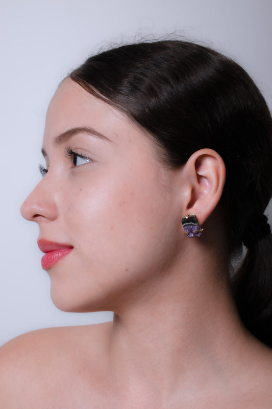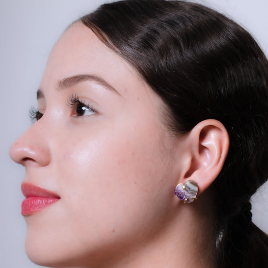 Amethyst Stalactite Round Shaped Stud Earrings 2