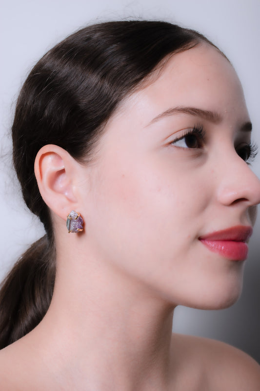 Amethyst Stalactite Teardrop Shaped Stud Earrings