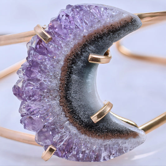 Amethyst Stalactite Druzy Moon Cuff Bracelet