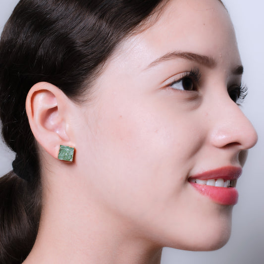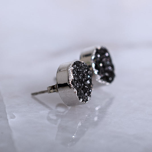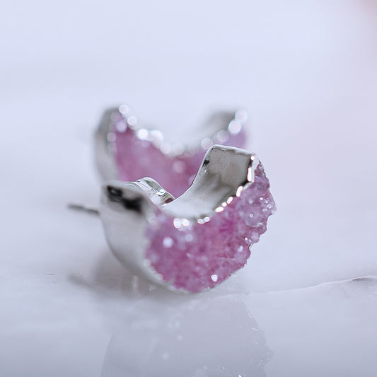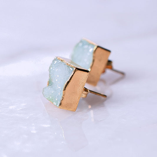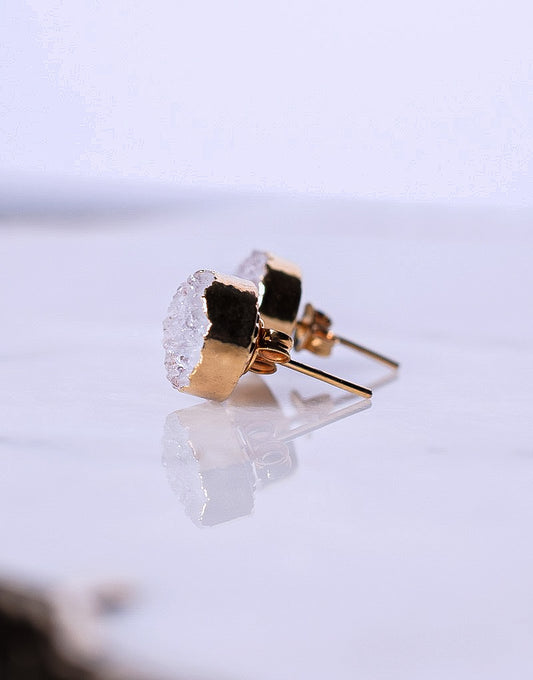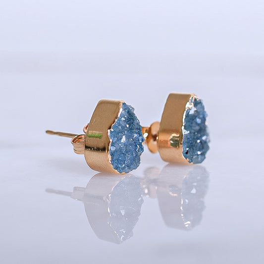 Druzy Quartz Teardrop Shaped Stud Earrings