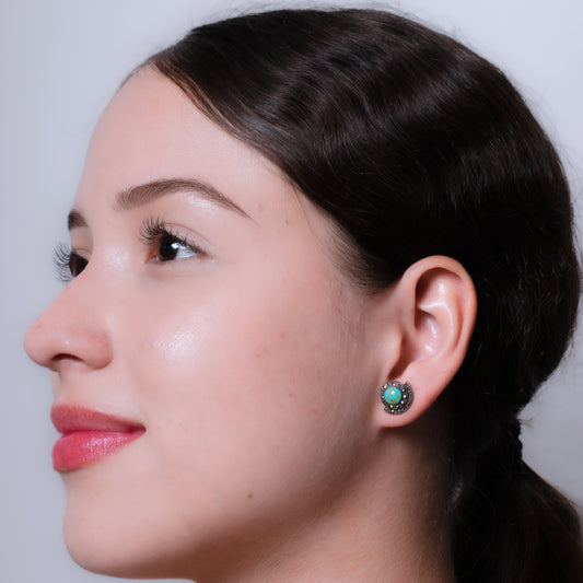 Turquoise and Marcasite Button Earrings